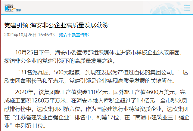 版權(quán)所有 © 2007-2021   南通市達(dá)欣工程股份有限公司版權(quán)所有   公司地址:江蘇省海安高新技術(shù)產(chǎn)業(yè)開發(fā)區(qū)通陽東路10號