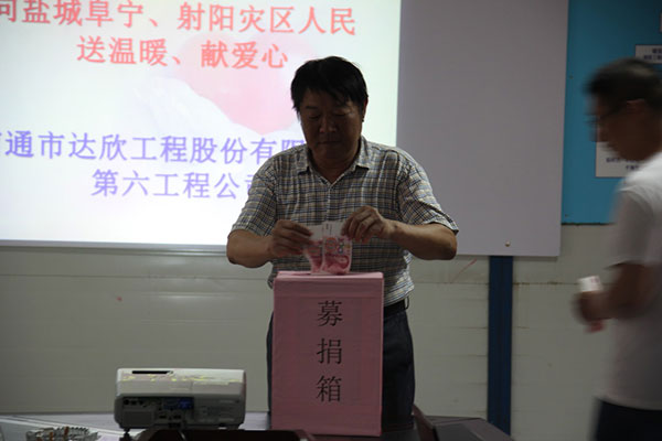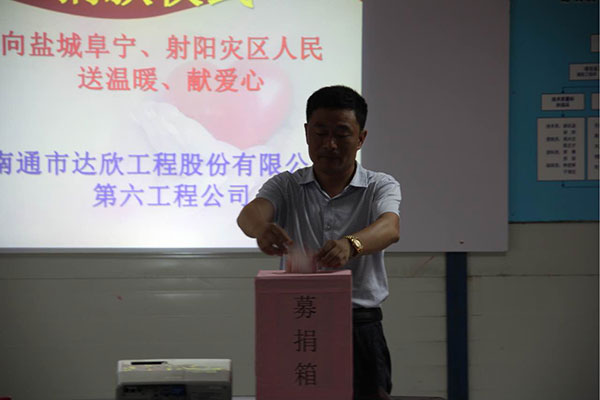 6月23日下午,江蘇省鹽城市阜寧縣、射陽(yáng)縣部分地區(qū)突發(fā)超強(qiáng)龍卷風(fēng),給當(dāng)?shù)卦斐芍卮笕藛T傷亡和財(cái)產(chǎn)損失。為幫助災(zāi)區(qū)群眾渡過(guò)難關(guān),體現(xiàn)中華民族“一方有難,八方支援”的傳統(tǒng)美德,7月1日,在黨的95周年生日到來(lái)之際,第六工程公司積極響應(yīng)上級(jí)號(hào)召,動(dòng)員全體干部職工尤其是黨員積極行動(dòng)起來(lái),向?yàn)?zāi)區(qū)進(jìn)行捐款。