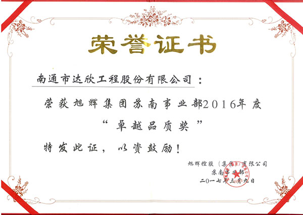 會上,公布了2016年度蘇南旭輝供應商評選結(jié)果,公司有幸被評選為蘇南旭輝“卓越品質(zhì)獎”,這是公司首次獲此殊榮,同時也是此次春茗會上中唯一獲此殊榮的建筑企業(yè)。