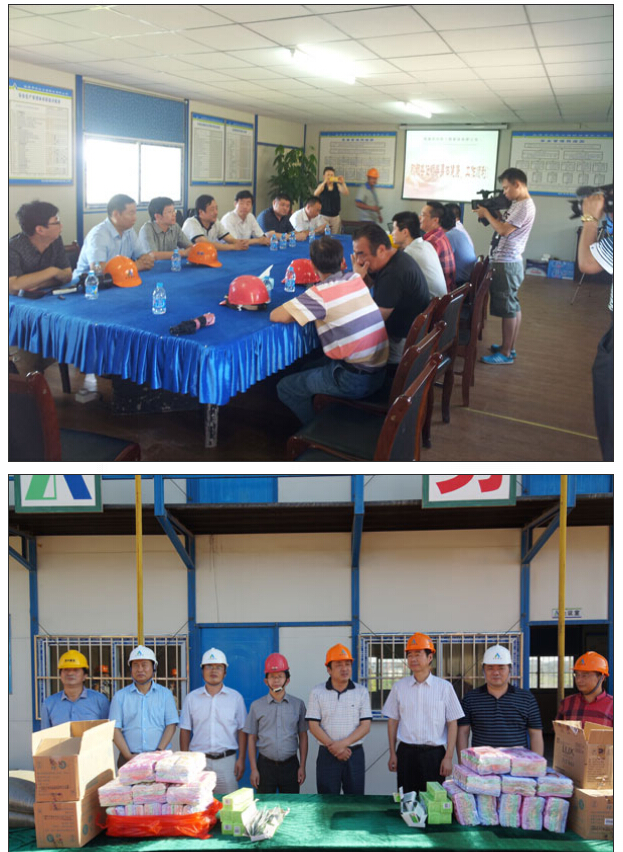 焦縣長代表海安縣委、縣政府對遠離家鄉(xiāng)為上海這座大城市建設(shè)作出貢獻的建設(shè)者們表示衷心感謝,感謝建設(shè)者們在這炎熱的季節(jié)堅守著崗位。他要求建筑施工企業(yè)要本著“以人為本”的宗旨,合理安排高溫時段的作息時間,切實抓好工人的飲食衛(wèi)生及各種后勤保障工作;要把安全生產(chǎn)放在首位,采取各種有效的措施,做好施工過程中安全防范和突發(fā)事件的應(yīng)急應(yīng)對工作,確保職工生命安全,確保生產(chǎn)安全。