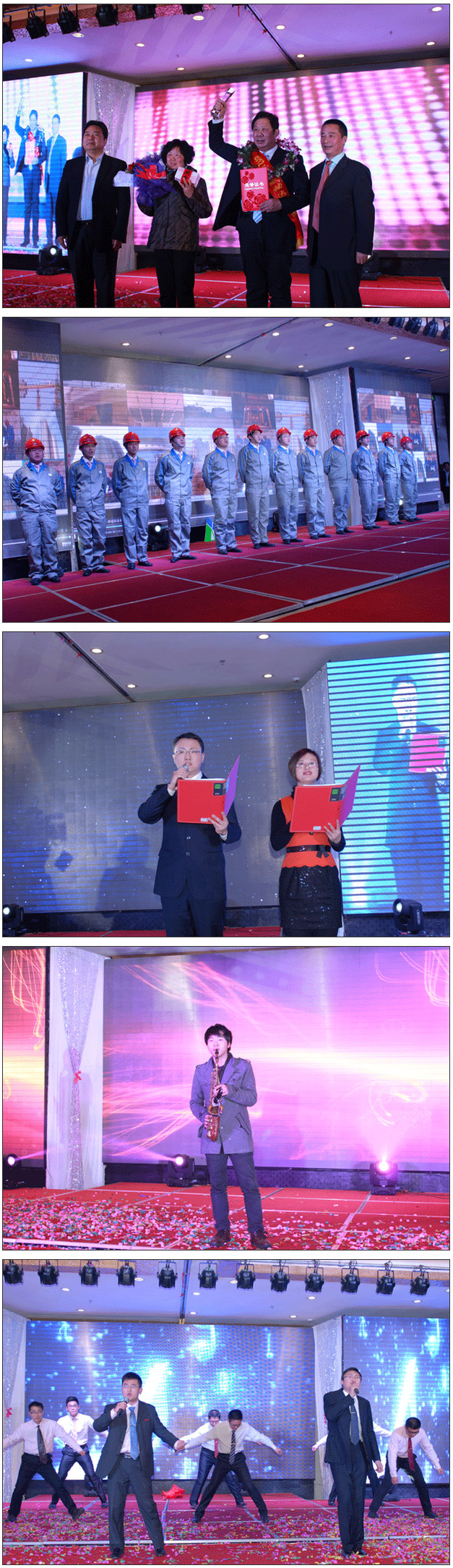 在喜慶樂典和主持人高亢激昂的開場(chǎng)后,公司董事長(zhǎng)馬和軍進(jìn)行了致辭答謝。他回顧了公司一年來所取得的輝煌成績(jī),感謝社會(huì)各界及公司全體同志們的努力,并對(duì)公司的未來發(fā)展之路描繪了藍(lán)圖;接著,縣委書記單曉鳴發(fā)表重要講話,她指出,建筑業(yè)是我縣的傳統(tǒng)產(chǎn)業(yè),也是一個(gè)富民強(qiáng)勢(shì)產(chǎn)業(yè),還是我縣財(cái)政收入的重要來源之一,作為縣內(nèi)的骨干企業(yè),達(dá)欣公司步入了公司歷史以來發(fā)展最快、榮譽(yù)最高、分配最多、貢獻(xiàn)最大的時(shí)期,她希望公司要加快發(fā)展,高起點(diǎn)定位,突出重點(diǎn),好中求快,實(shí)現(xiàn)達(dá)欣新飛躍。