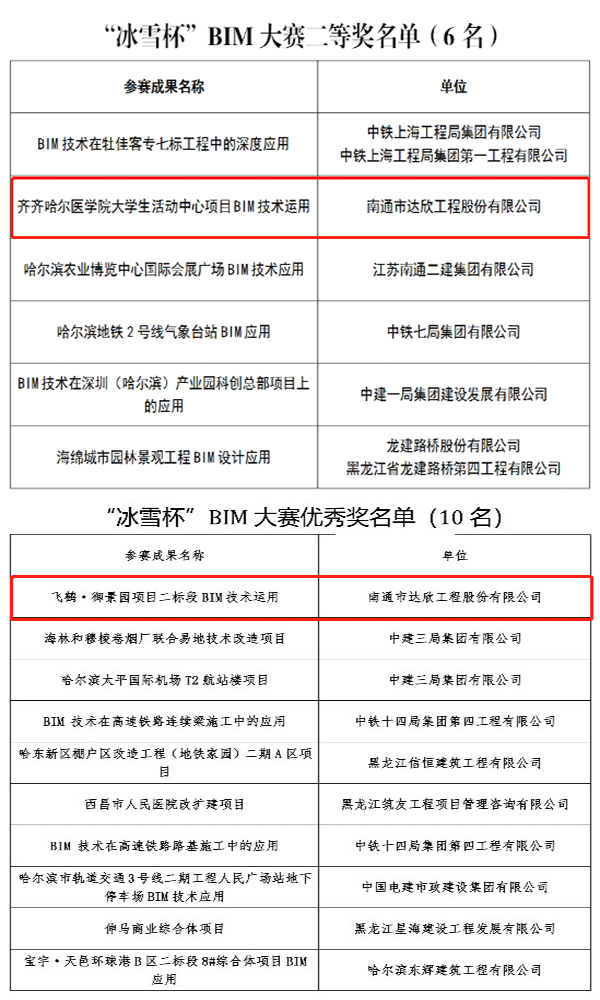 黑龍江省第一屆“冰雪杯”建設(shè)工程BIM大賽共收到30項成果,其內(nèi)容涵蓋BIM應(yīng)用的各個階段,通過初賽《飛鶴·御景園項目二標(biāo)段工程BIM技術(shù)應(yīng)用》榮獲“冰雪杯”BIM大賽優(yōu)秀獎,《齊齊哈爾醫(yī)學(xué)院大學(xué)生活動中心BIM技術(shù)應(yīng)用》進入決賽并通過視頻直播答辯榮獲大賽二等獎。