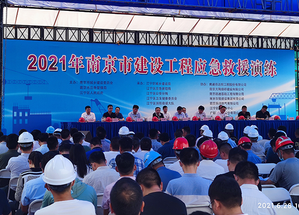 6月28日,由南京市城鄉(xiāng)建設(shè)委員會、南京市應(yīng)急管理局、江寧區(qū)人民政府主辦的“南京市建設(shè)工程應(yīng)急救援演練觀摩會”在第二工程公司蘇沃科技園項目部召開。南京市建委副書記朱家祥、南京市安委辦專職副主任韓成頌;江寧區(qū)人民政府副區(qū)長孫兆金、江寧區(qū)城鄉(xiāng)建設(shè)局局長易強等領(lǐng)導(dǎo),全市施工企業(yè)、監(jiān)理單位、建設(shè)單位負(fù)責(zé)人及相關(guān)人員等近500余人參加本次活動。集團常務(wù)副總經(jīng)理王邦國主席臺就坐。