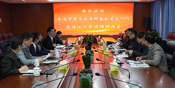 2月24日上午,南通市商務(wù)局黨組成員、副局長(zhǎng)黃柳春率隊(duì)蒞臨達(dá)欣集團(tuán)調(diào)研,海安市商務(wù)局副書記、副局長(zhǎng)史霞兵,集團(tuán)董事長(zhǎng)馬和軍、黨委書記劉厚純、常務(wù)副總經(jīng)理王邦國等陪同。
