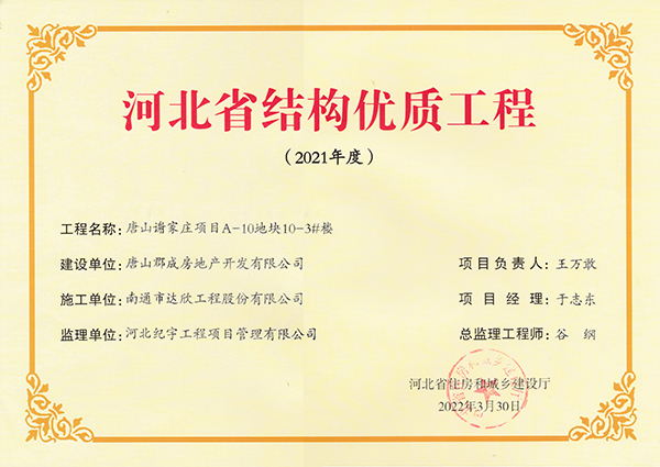 近日,從河北省住房和城鄉(xiāng)建設廳傳來喜訊,集團邊各寨棚戶區(qū)改造項目、唐山謝家莊項目、邯鄲市雞澤縣多館合一等五項目榮獲河北省結構優(yōu)質(zhì)工程。