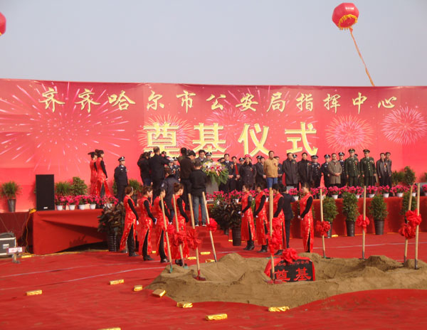 奠基儀式由市公安局黨委委員、工會(huì)主席萬(wàn)迎新主持,副市長(zhǎng)、市公安局黨委書(shū)記、局長(zhǎng)吳剛致辭,他在致辭中說(shuō)作為全市矚目、全警矚目的大項(xiàng)目、公安基礎(chǔ)建設(shè)的大工程,衷心希望南通市達(dá)欣工程股份有限公司的建設(shè)者們精心施工,將公安指揮中心建設(shè)成一流的精品工程。公司監(jiān)事會(huì)主席、第七工程公司經(jīng)理王建國(guó)同志在奠基儀式上作表態(tài)性發(fā)言,他表示要認(rèn)真履行合同,努力將本項(xiàng)目打造成齊市的典范工程、黑龍江省的精品工程、全國(guó)的優(yōu)質(zhì)工程,讓建設(shè)方滿意,讓社會(huì)放心。