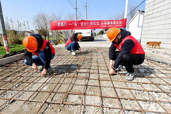 活動(dòng)中,集團(tuán)董事、第十一工程公司總經(jīng)理丁國(guó)東和總公司志愿服務(wù)分隊(duì)隊(duì)長(zhǎng)徐祝軍帶領(lǐng)志愿者將路面深層的積水和淤泥進(jìn)行了清理,并重新澆筑混凝土路面,將坑洼的“煩心路”變成了平整的“連心路”。