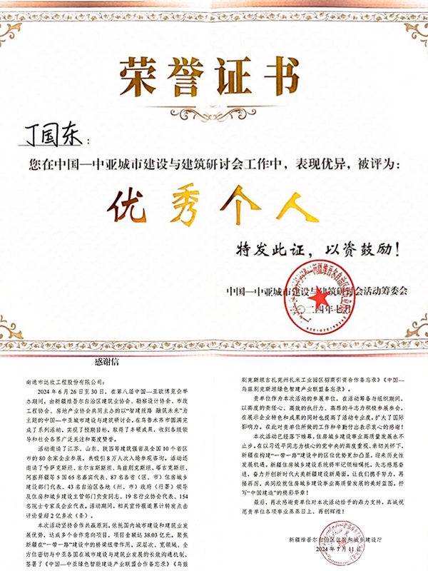 近日,公司收到一封新疆維吾爾自治區(qū)住房和城鄉(xiāng)建設(shè)廳發(fā)來的感謝信,信中對我公司在烏魯木齊召開的“智建絲路 融筑未來”為主題的中國——中亞城市建設(shè)與建筑研討會中,所做的工作和辛勤付出表示衷心的感謝。公司作為本次活動的江蘇省參展單位之一,在活動籌備期間,以高度的責(zé)任心、高效的執(zhí)行力、高昂的斗志積極參展參會,在展示企業(yè)特色和成果的同時也提高了活動專業(yè)度,擴大了國際影響力。