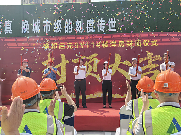 6月18日,第四工程公司承建的高鐵片區(qū)商務(wù)核心區(qū)58號地(簡稱盛邦啟元)項(xiàng)目9號、11號洋房封頂儀式隆重舉行。建設(shè)單位、監(jiān)理單位等主要領(lǐng)導(dǎo)齊聚現(xiàn)場,共同見證這一重要時刻。