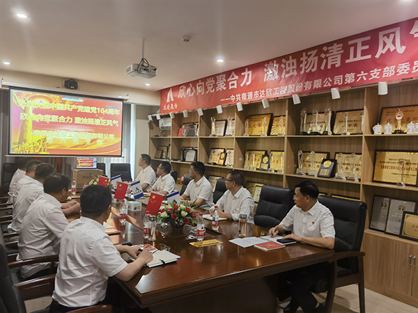 在建黨 104 周年來臨之際,第六黨支部組織全體黨員、積極分子開展“欣心向黨聚合力、激濁揚清正風(fēng)氣”七一主題黨日活動。