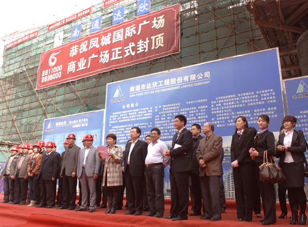 在4月15日的裙樓封頂儀式上,唐山天壤房地產(chǎn)開發(fā)有限公司闞春鳳董事長首先向全體參建人員表示衷心的感謝,對達(dá)欣公司在工程建設(shè)中所做的努力給予高度評價(jià)和充分肯定,她在最后致詞中堅(jiān)信:在達(dá)欣股份等諸多品牌公司的通力協(xié)作之下,在全體參建人員的共同努力下,鳳城國際廣場項(xiàng)目一定會如期完成。