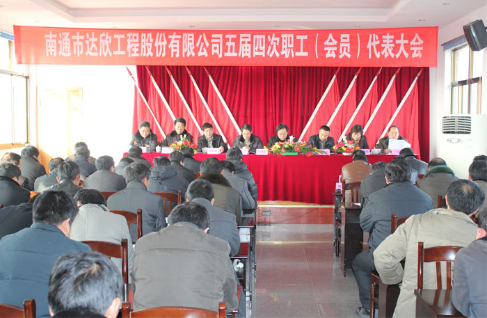 公司五屆四次職工會員代表大會于2月11日召開。主席臺就座的有海安縣總工會常委、組織部長陸威生、海安建管局副局長、建筑工會主席吉遠(yuǎn)忠、公司董事長馬和軍、公司黨委書記劉厚純等,公司94名職工代表參加了會議。