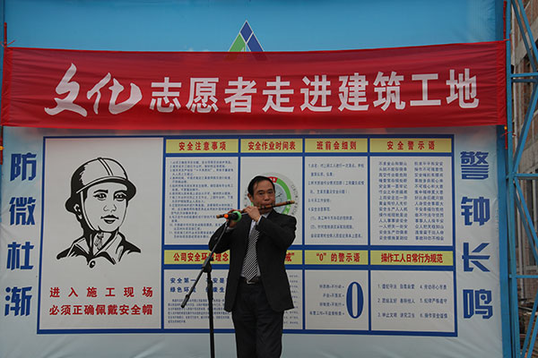 文化志愿者的精彩演出受到了職工們的熱烈歡迎,“我平時都在高空作業(yè),難得有這樣的機(jī)會坐下來看現(xiàn)場表演,這樣的活動讓我們感到很開心?!惫び牙钊蕠θ轁M面地說。