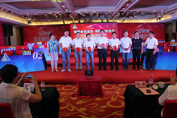 本次競賽以“加強(qiáng)安全法治,保障安全生產(chǎn)”為主題,在公司黨委書記劉厚純熱情洋溢的致辭后,由十一個工程公司隊(duì)伍組成的參賽代表隊(duì),經(jīng)過必答、搶答、風(fēng)險等環(huán)節(jié)的激烈角逐后。最終第三工程公司獲得第一名,第一、四工程公司獲得第二名,第二、八、九工程公司獲得第三名,第三工程公司代表隊(duì)還獲得優(yōu)秀組織獎。
